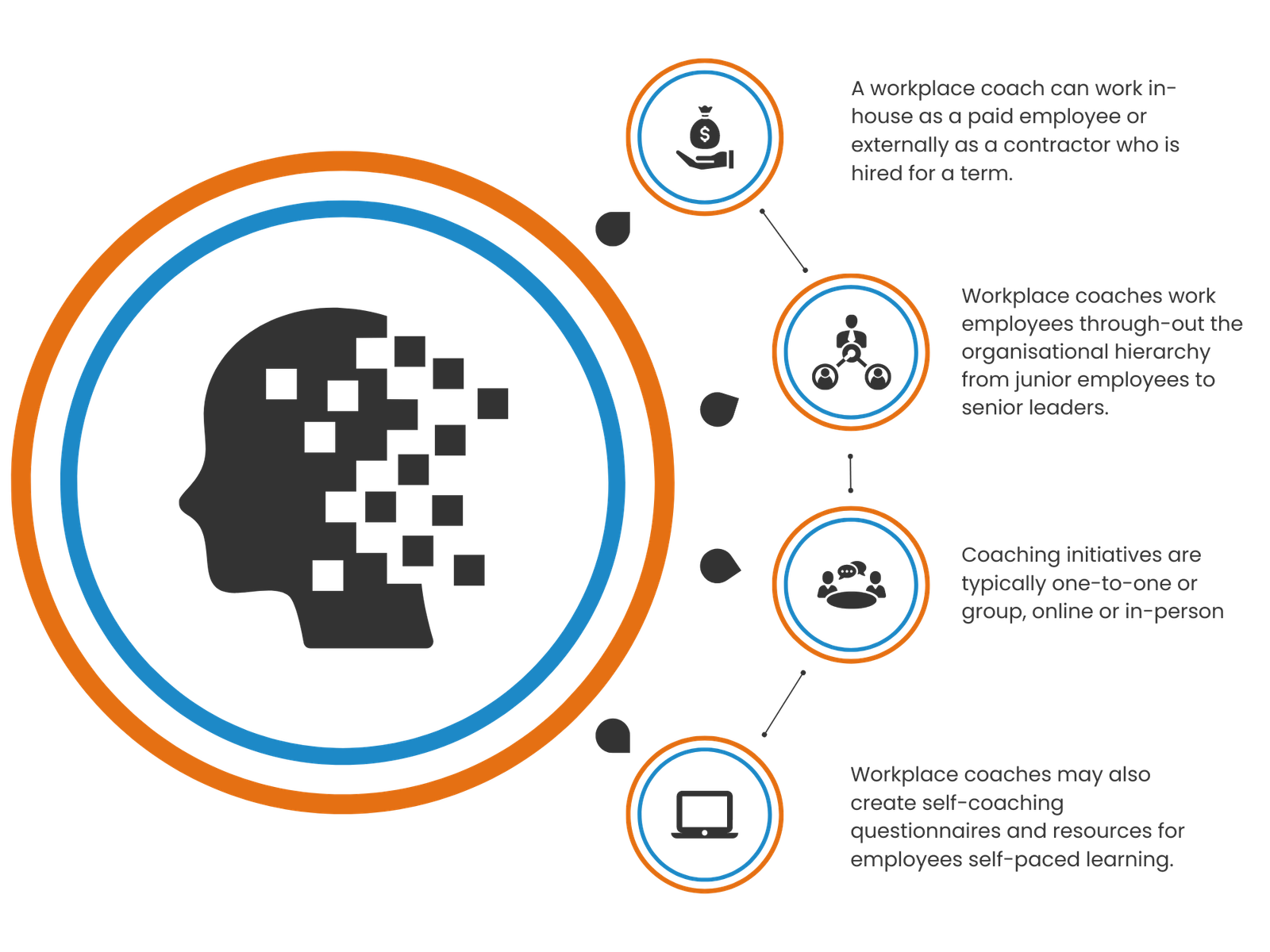 Ultimately, Organisational Leadership Coach can perform their roles in a variety of ways to support employees to achieve their potential.